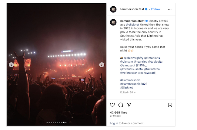 Another problem concerns the susceptibility of festival and event organisers to fraud. Early in 2023, what turned out to be a scam event known as the Bersenandung Festival, defrauded large numbers of prospective festival goers. Tickets were sold through Instagram for a series of concerts and festivals that were touted to be held in in West Kalimantan, East Kalimantan, North Sumatera and North Sulawesi. Typically, in these cases after enough tickets are sold for each event, the promoter’s Instagram account is closed and the promoter simply disappears, popping up in a different city to promote a different fake concert. Police have since arrested the fraudsters involved in the Bersenandung festival scam, but the incident highlighted the risks for the public when purchasing tickets for an event with no guarantee that it will ever materialise.