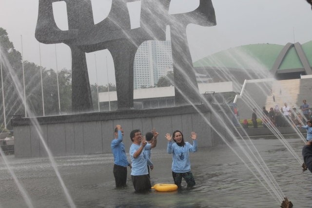 Jumping into the fountain in front of the parliamentary complex of the House of Representatives minutes after the Mental Health Bill was passed into law (July 2014) / Nova Riyanti Yusuf