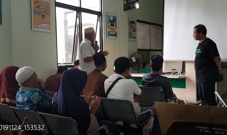 Seorang tokoh masyarakat sedang berdiskusi dengan Bagus Utomo tentang perlunya Menteri Kesehatan yang memerhatikan kesehatan jiwa (foto: penulis)